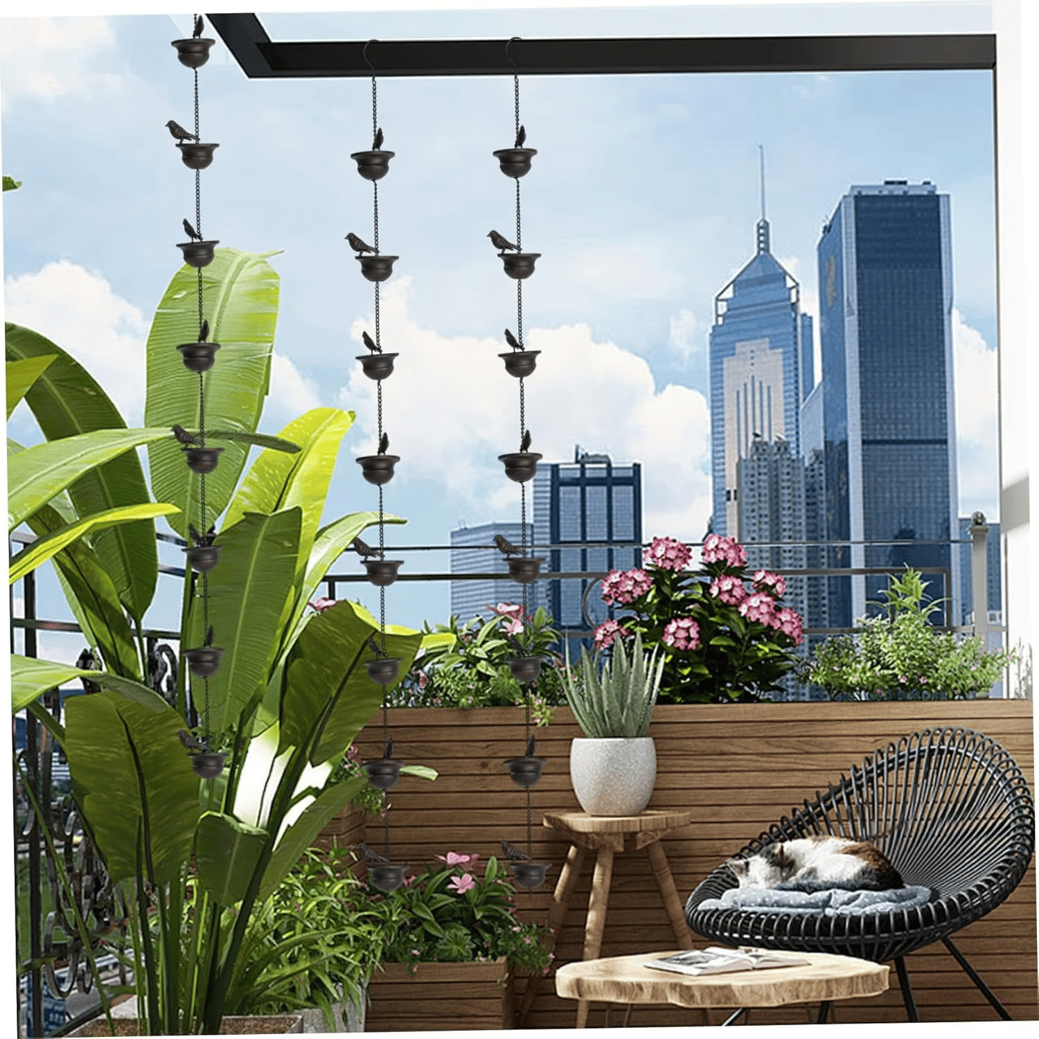 Denne kaskaderende regnkjeden er et fantastisk alternativ til tradisjonelle nedløpsrør. Regnvann renner grasiøst fra fuglebad til fuglebad, og skaper en naturlig fosseffekt som er både visuelt og auditivt beroligende.
